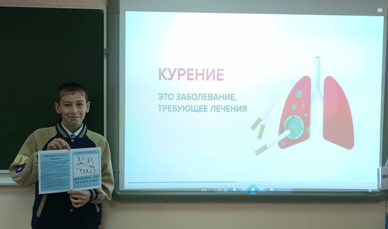 В целях формирования у молодежи негативного отношения к потреблению психоактивных веществ в нашей школе были проведены мероприятия приуроченные к Международному дню отказа от курения. Учитель физической культуры Савина Д.М. совместно с активистами "Движения Первых" провели утреннюю зарядку для обучающихся 1-8 классов. Классные руководители на классном часе "Табак – наш худший враг" рассказали обучающимся о вреде курения и употребления психотропных веществ, призывая соблюдать здоровый образ жизни.