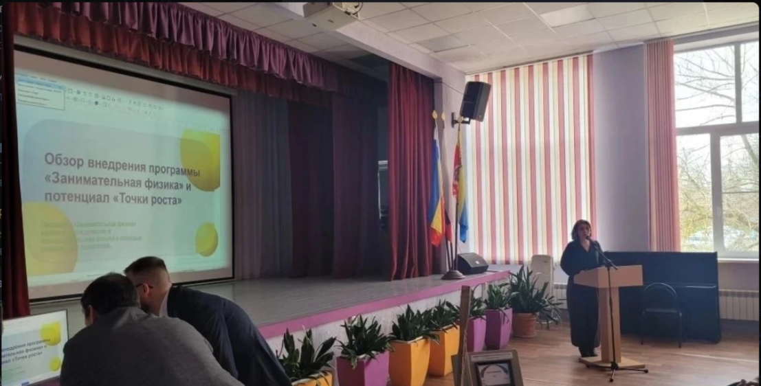 МБОУ Красноармейскую СОШ Орловского района представили учителя физики и информатики, Петросян Александр Сергеевич и Петросян Наталья Николаевна. В своем выступлении они рассказали о том, как оборудование Центра "Точка Роста" помогает сделать занятия внеурочной деятельности "Занимательная физика" более наглядными и интересными. Выступление педагогов получило высокую оценку организаторов и участников конференции подтвердив, что профессиональный потенциал учителей является залогом создания современной образовательной среды для школьников.